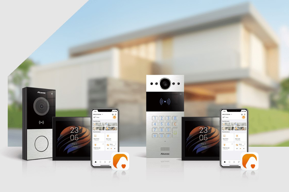 Smart home entry kit comprises a smart door phone, a smart home control panel, and a mobile application. Easy to configure, user-friendly, and with remote control available, it fits your intercom, access control, home automation, and home security needs in various scenarios.